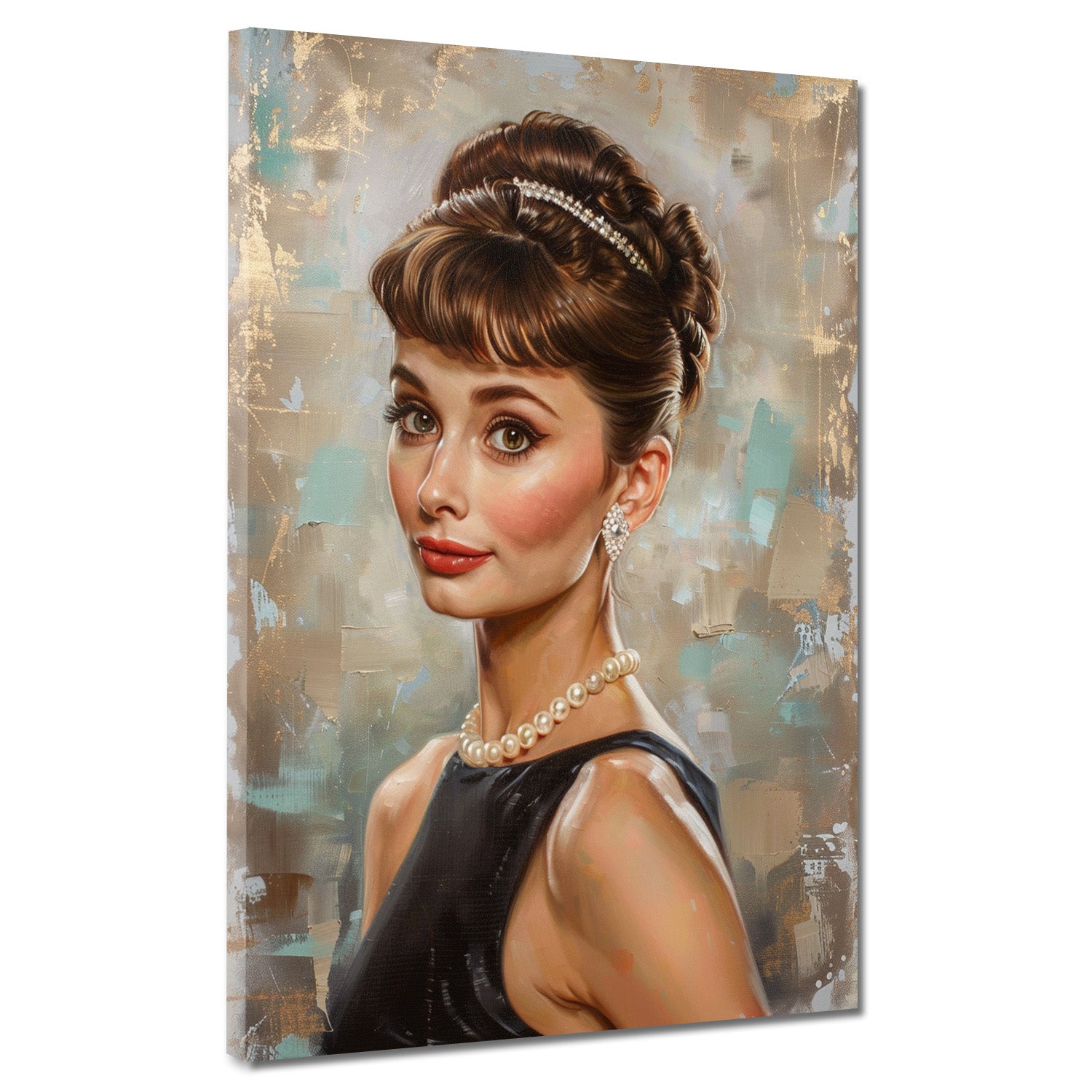 Audrey ritratto vintage con perle orecchini retro quadro