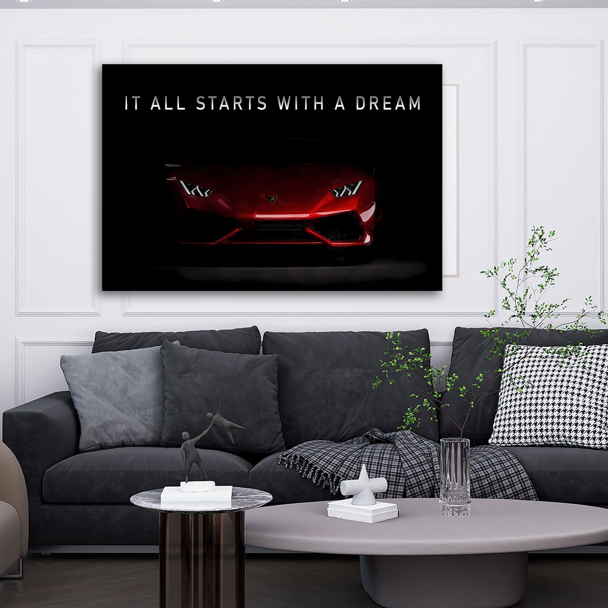 Auto sportivo rosso motivazione It all Starts with a Dream quadro