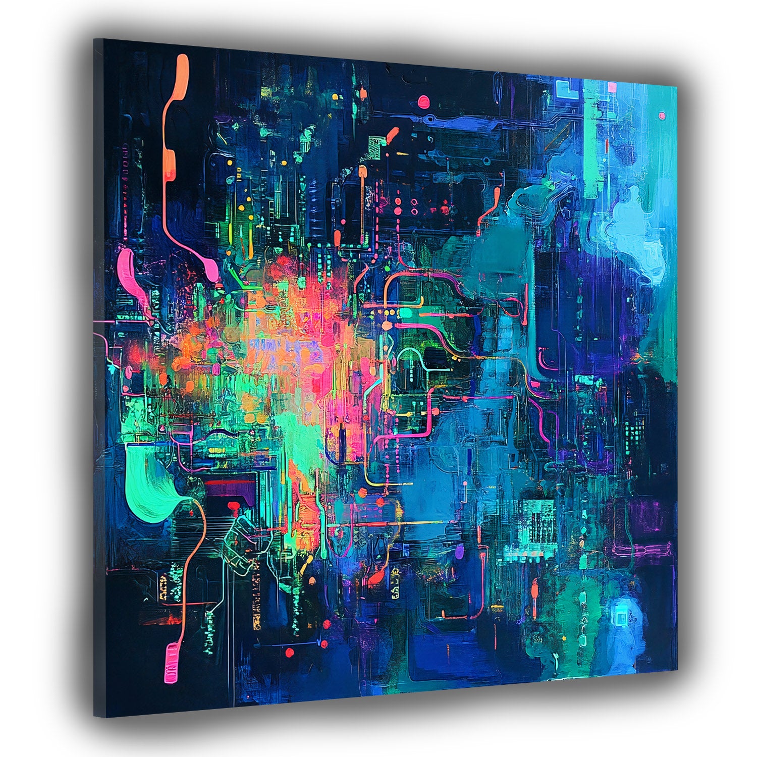 Circuiti astratti futuristici neon su sfondo blu scuro quadro