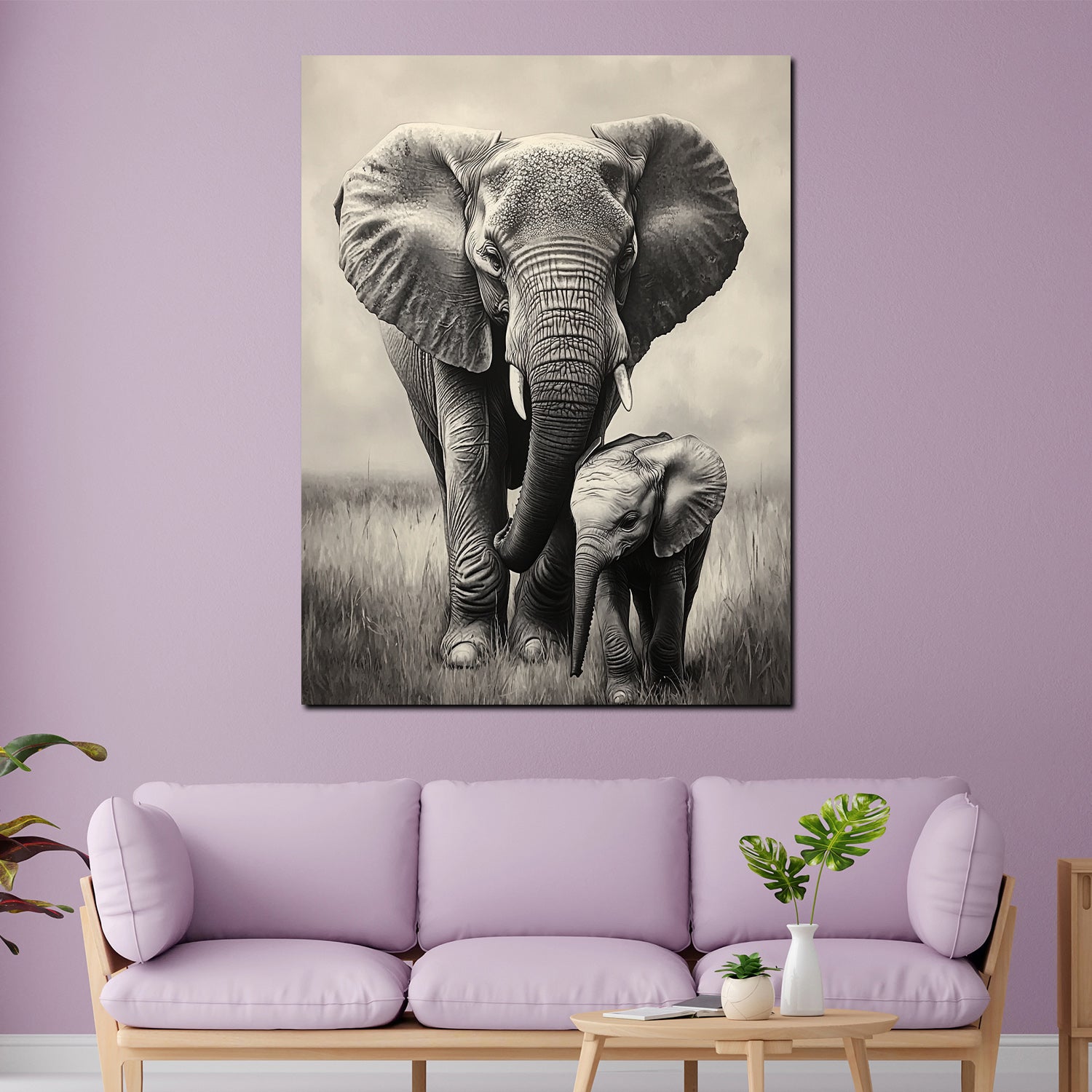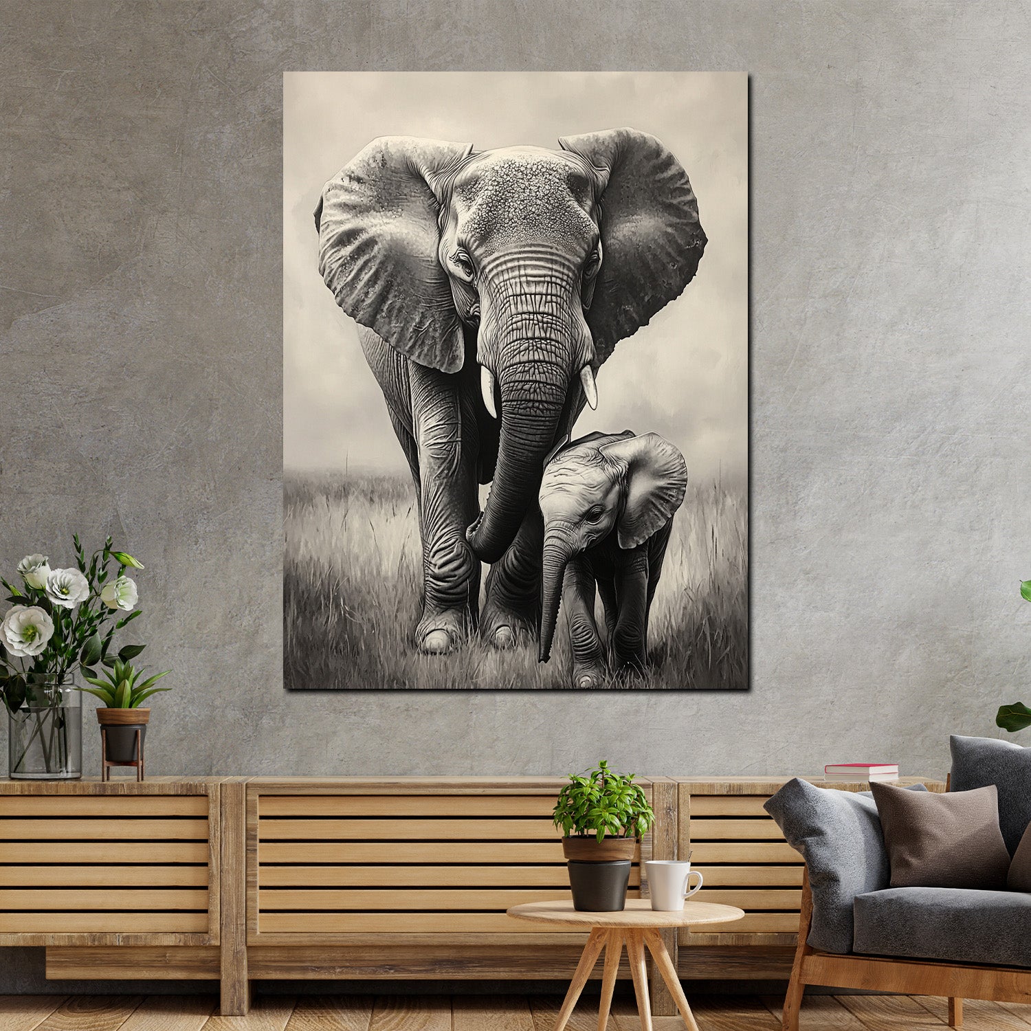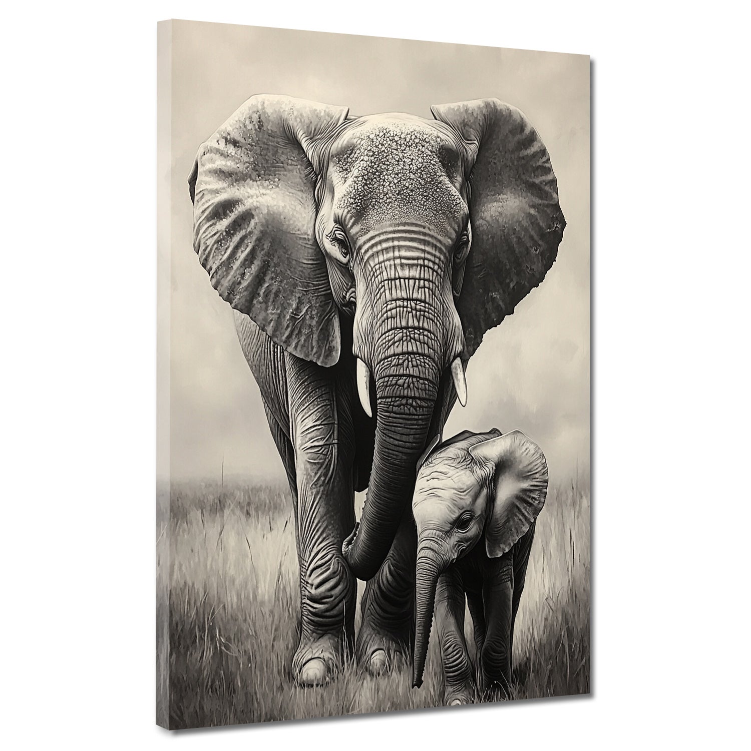 Elefanti bianco e nero affetto famiglia natura eleganza quadro
