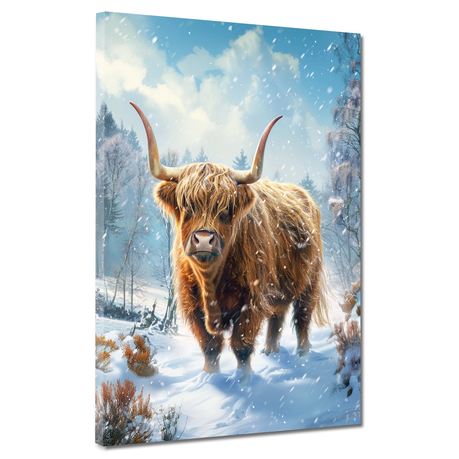 Mucca highland paesaggio innevato foresta quadro