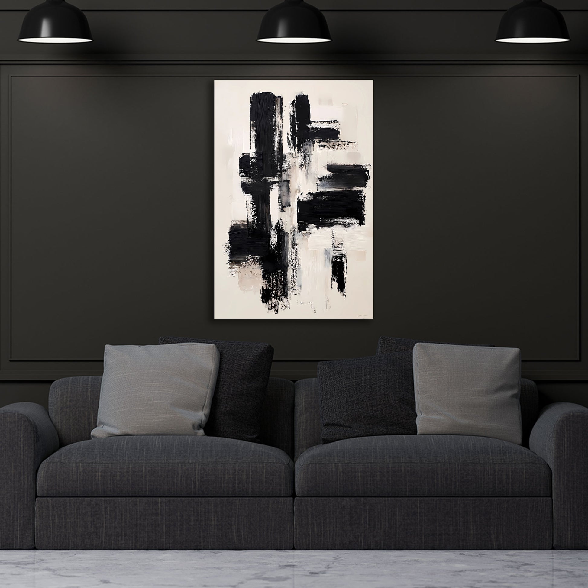 Pennellate astratte nero bianco beige composizione minimal quadro