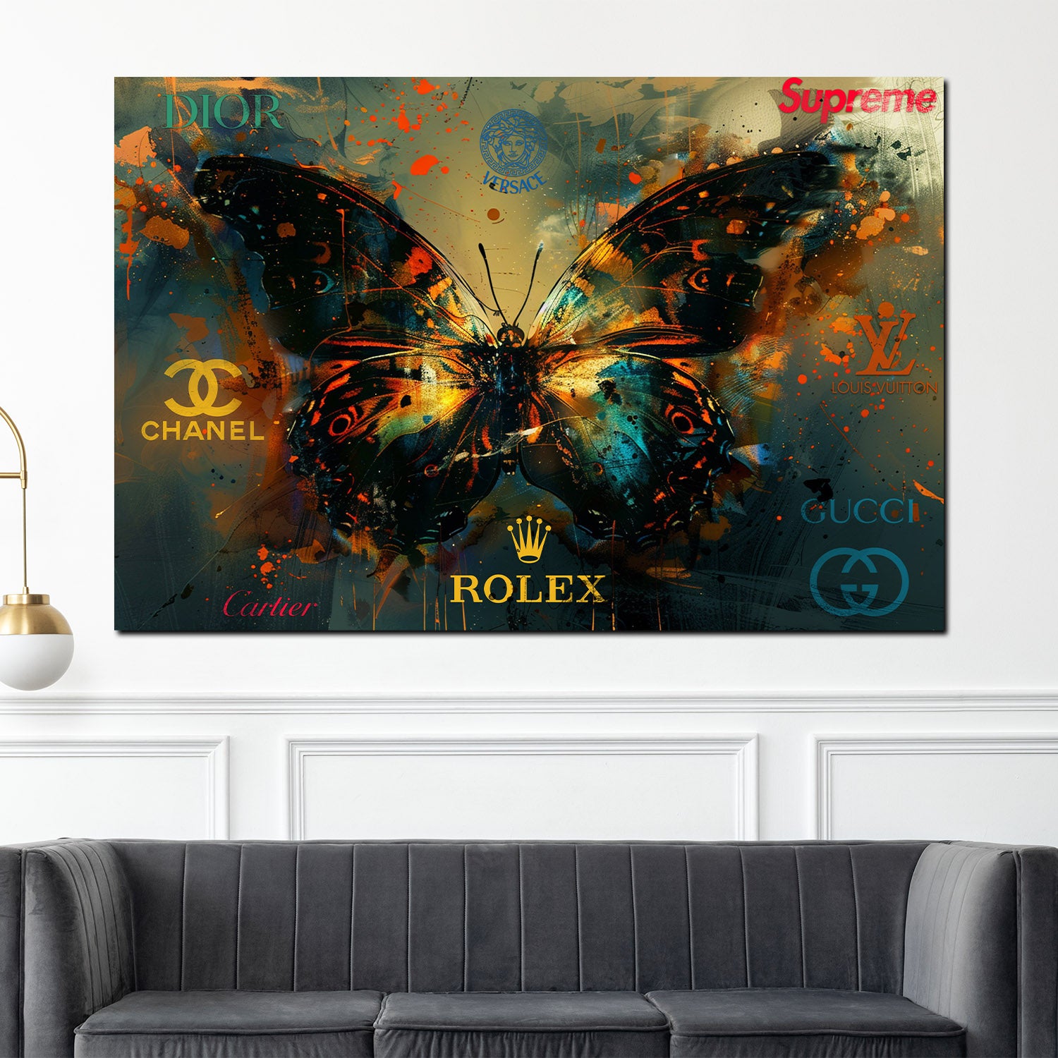 Pop Art farfalla marchi di lusso sfondo scuro quadro