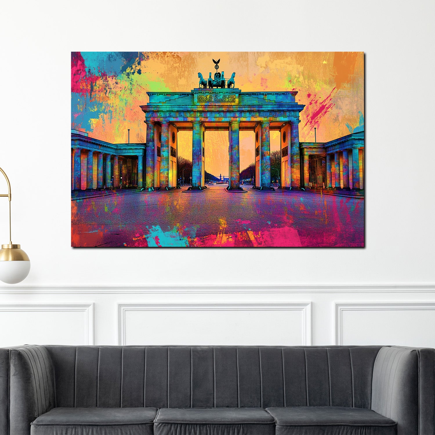 Quadro città pop art berlino porta di brandeburgo colorato tramonto urbano