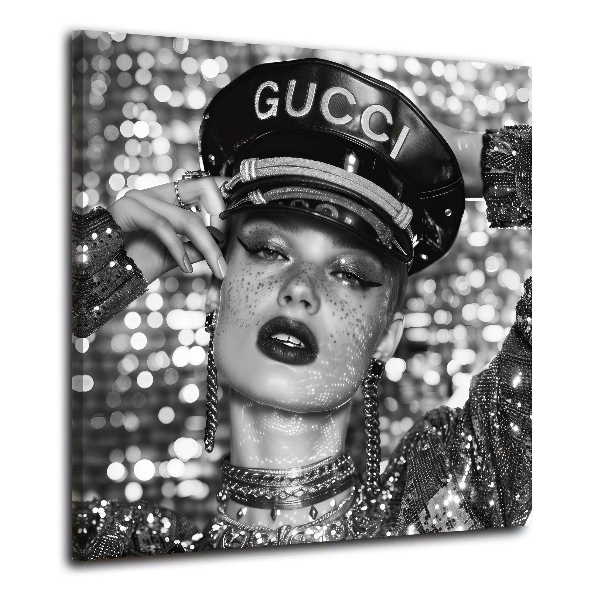 Ritratto moda con donna brillante e stile bianco e nero quadro