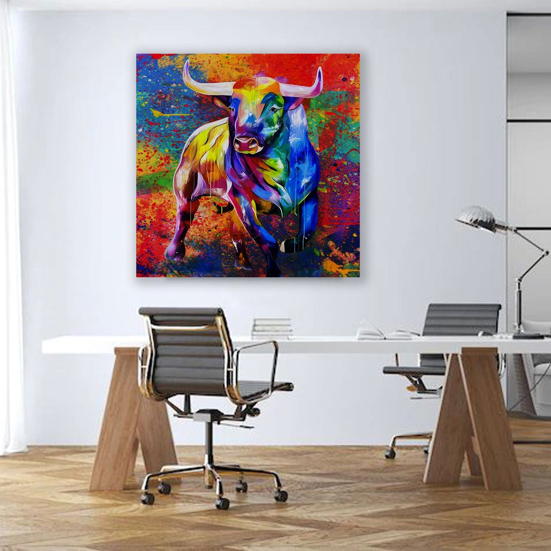 Toro pop art animale colorato energia quadro